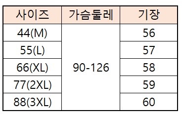 44(M),55(L),66(XL),77(2XL),88(3XL)