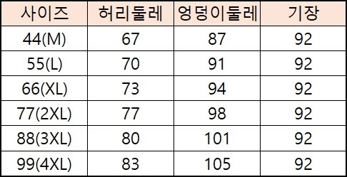 44(M),55(L),66(XL),77(2XL),88(3XL),99(4XL)