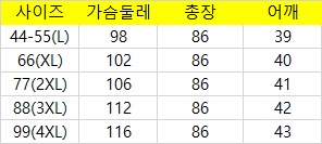 44-55(L),66(XL),77(2XL),88(3XL),99(4XL)