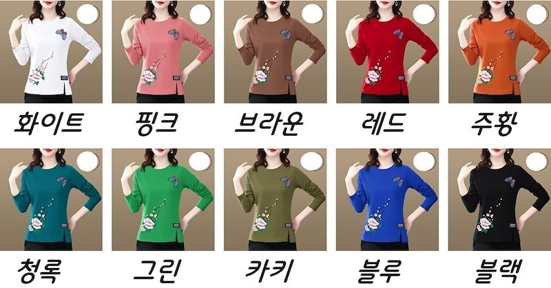 화이트,핑크,브라운,레드,주황,청록,그린,카키,블랙 (블루품절)