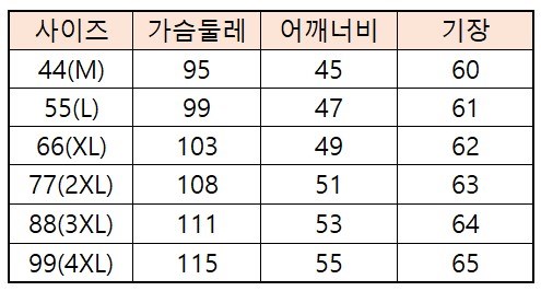 44(M),55(L),66(XL),77(2XL),88(3XL),99(4XL)
