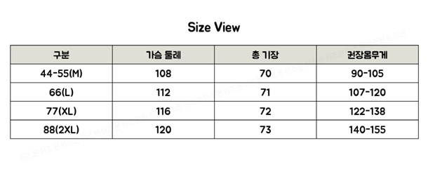 44-55(M),66(L),77(XL),88(2XL)